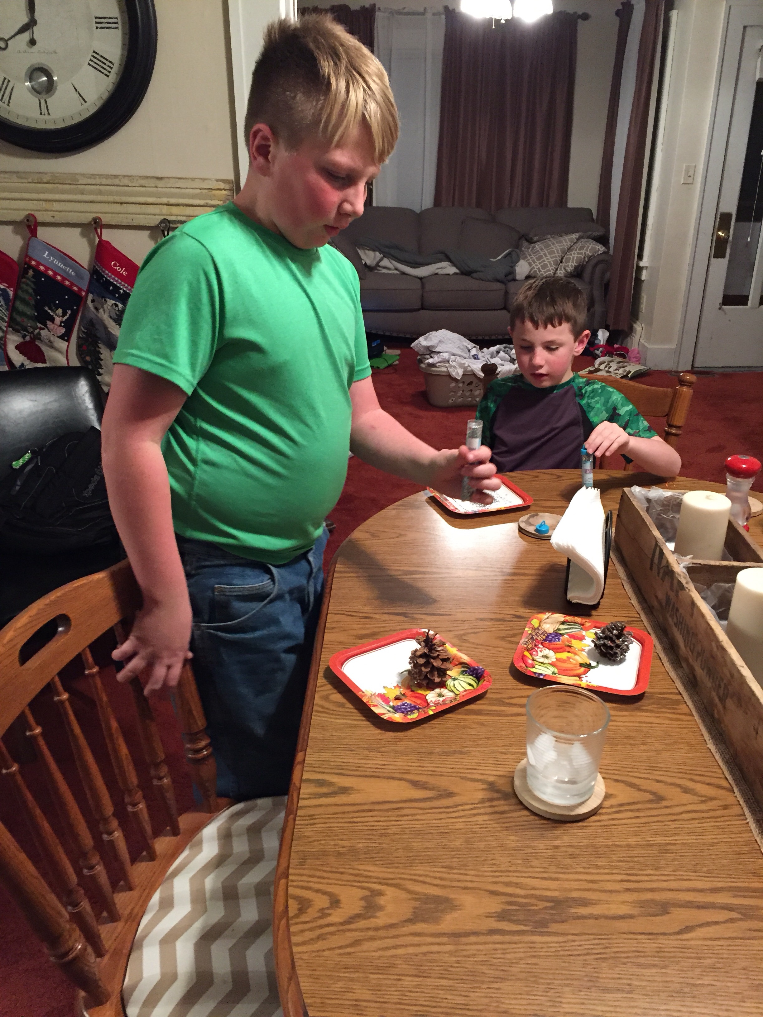 So we made our silver pine cones tonight and will leave them on our table. I can’t wait to see what else this Advent calendar has in store for us.