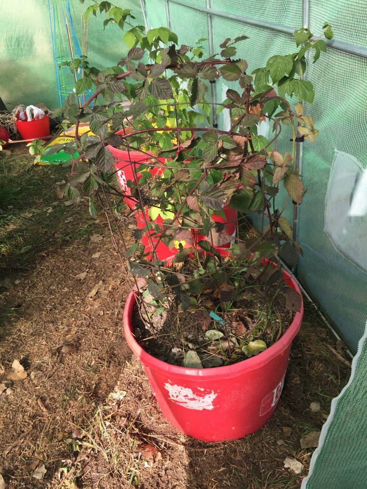 I also brought the raspberries and blackberries into the greenhouse for the winter. We are growing them in “pots” that we have an abundance of here so they are a little more intolerant of the cold because of this. I also need to get them trellised this winter so I now have somewhere warm to work on that.