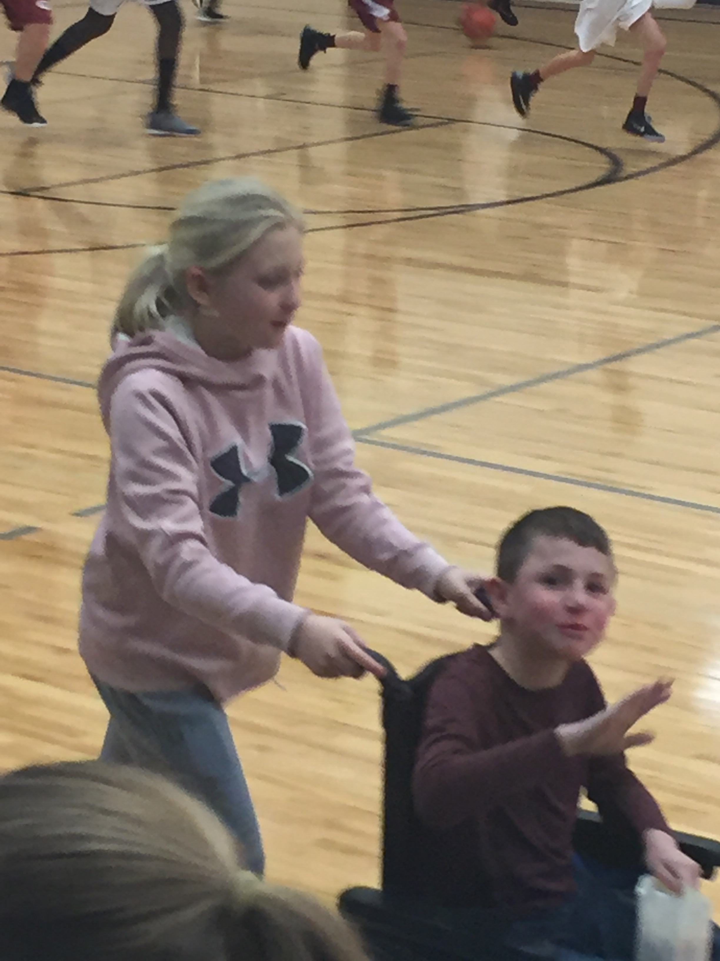 We have also been enjoying Cole’s 7th grade basketball season. Cade has been enjoying feeling like part of the team by being the student manager. Seems normal until you factor in the wheelchair and that the student manager needs and equipment manager to help him out. Luckily he has one of the best friends in the world to give him a hand.