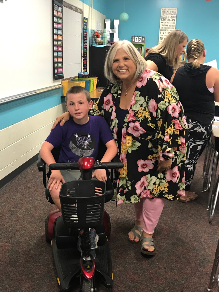 We knew Cade was going to need some extra help this year. It is becoming more difficult for him to walk although he still can. His back is so arched that it makes it really difficult for him. So I knew that he would rely more heavily on his scooter.